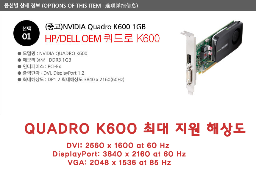 쿼드로 K 시리즈는 DP포트를 통해 4K( 3840 x 2160 해상도) 출력이 가능합니다.