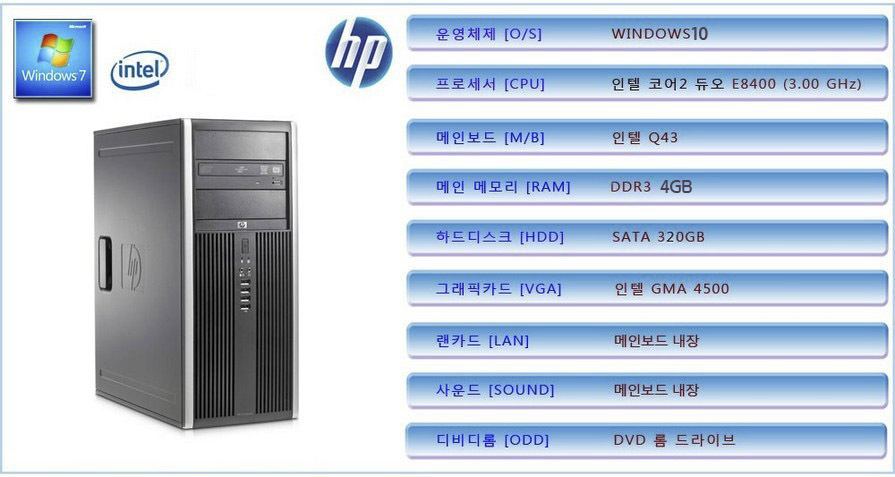 home / 브랜드 PC / 일반 사무용PC / 중고 HP 워크스테이션 6000 pro MT E8400 4G 320G